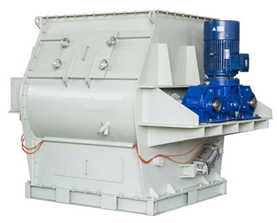 雙軸漿葉無重力攪拌機(jī)臥式筒體內(nèi)裝有雙軸旋轉(zhuǎn)反向的漿葉,漿葉成一定角度將物料沿軸向、徑向循環(huán)翻攪,使物料迅速混合均勻;為降低設(shè)備易損件的更換成本,槳葉葉片可做成兩片式,在葉片基座上墊一塊可移動(dòng)小葉片,可直接更換磨損的小葉片,經(jīng)濟(jì)快捷; 出料形式一般為氣動(dòng)(手動(dòng))翻板閥,圓弧閥門緊密嵌入筒內(nèi),與筒內(nèi)壁齊平,無物料堆積和混合死角現(xiàn)象;標(biāo)準(zhǔn)型有大開門小開門之分,大開門開口到筒邊,放料干凈快捷,殘留少。